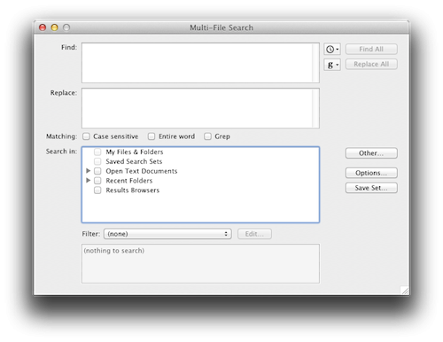Another version uses the find command, which allows you to be very specific about which files you search, but it takes longer if you want to search a lot of files.